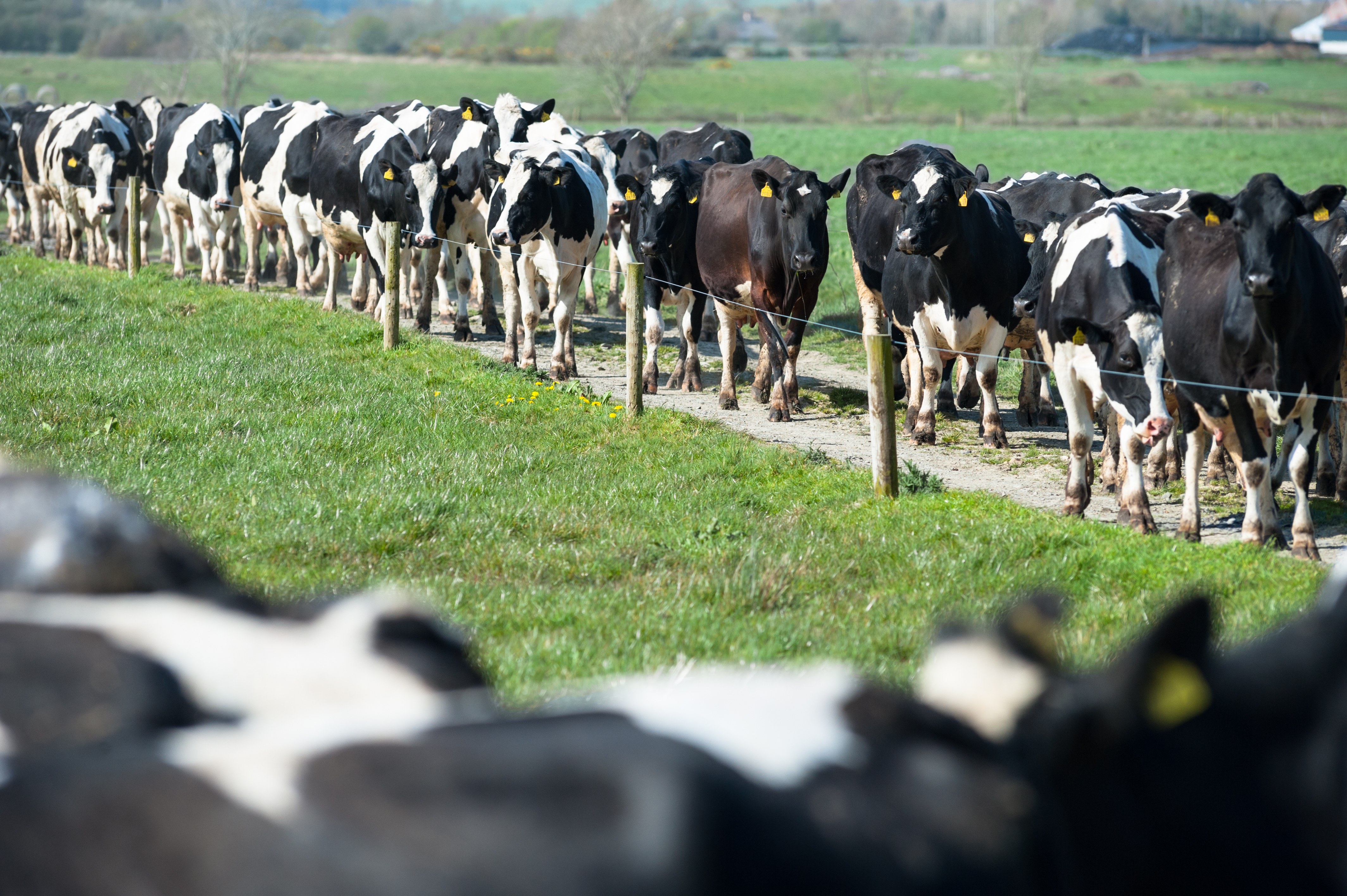 Herd,Of,Dairy,Cows,Walking,On,Farm,Path