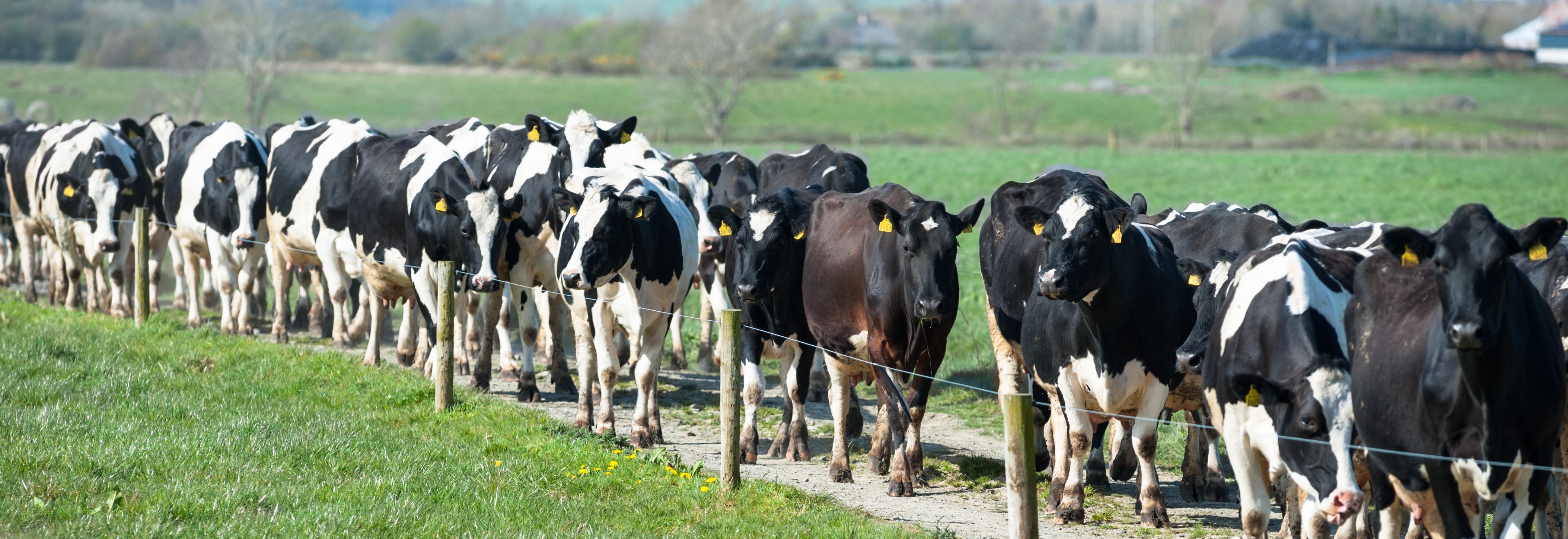 Herd,Of,Dairy,Cows,Walking,On,Farm,Path